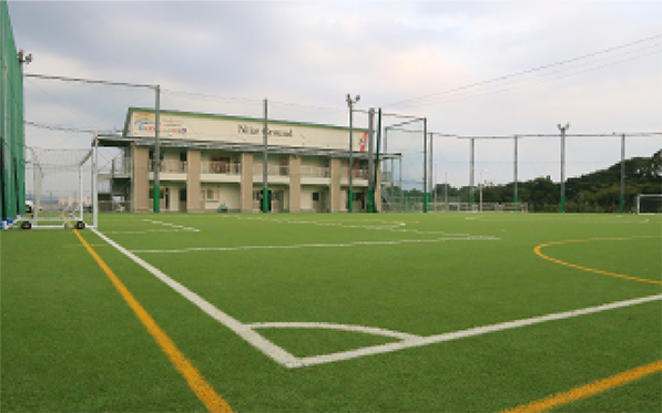 イギリスの名門チーム マンチェスター・ユナイテッド のサブグラウンドで使用されている人工芝と同様の物が敷設された人工芝グラウンドで、 砂のグラウンドと比較し怪我の発生を軽減することができます。 また、多少の雨では影響をほとんど受けないため、安定してトレーニングを行うことができます!